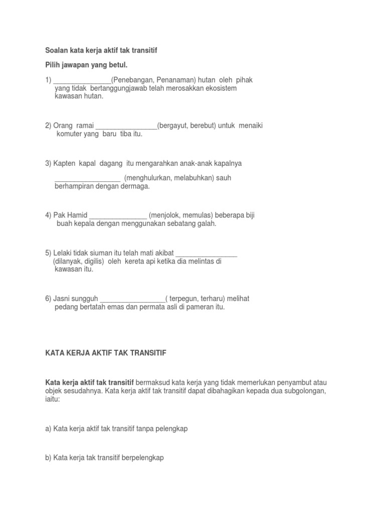 Latihan Kata Kerja Aktif Tak Transitif Pdf